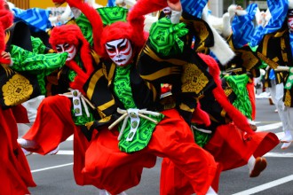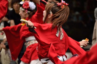 | The naruko clappers required for dancing in their hands. Teams compete against each other in elaborately designed costumes and accessories. 270 teams competed to won the final stage where only 12 teams perform for the Grand Prix. | |