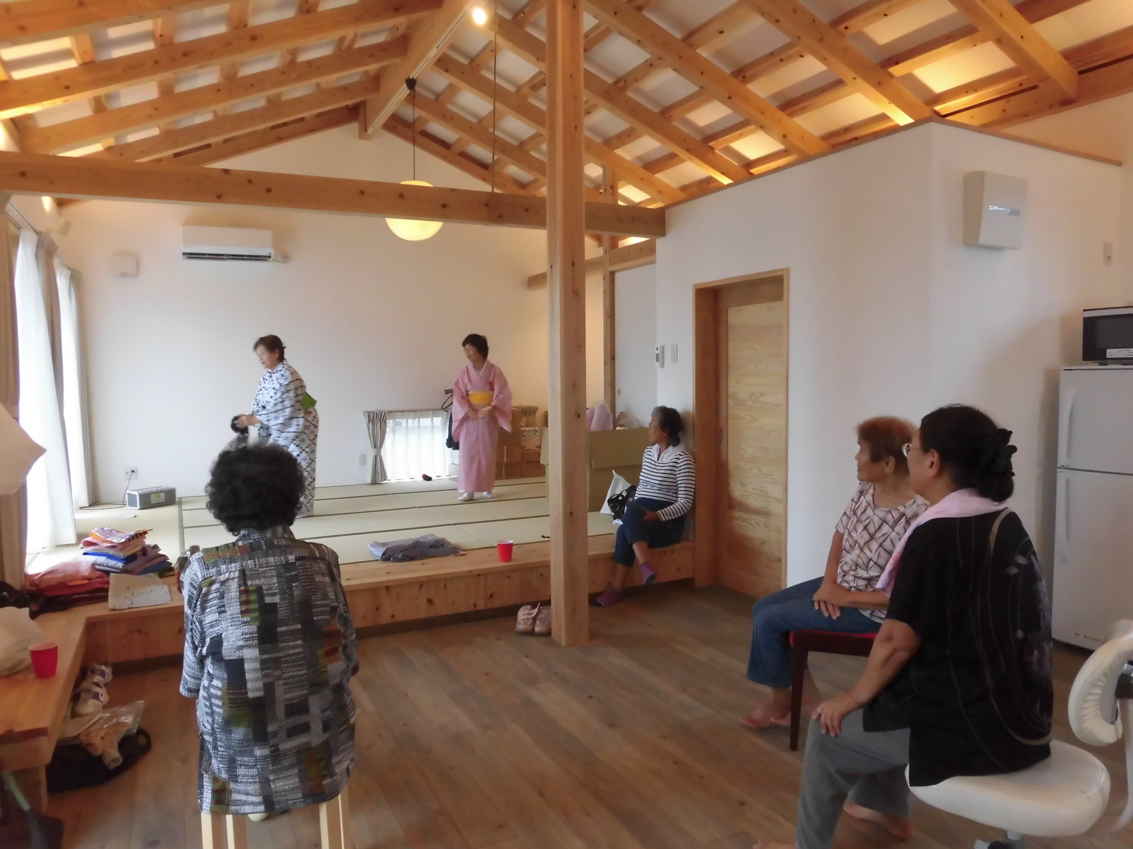 They are modelled on the “Home-for-All” projects built in North-East Japan. Soon after Great East Japan Earthquake I visited a community space in Sendai. All it had was wallpaper on steel walls, a cheap carpet, cushions piled up in a corner, and a single TV. I saw this cold space and thought how I wanted to make somewhere to who had lost their homes could warm their hearts together. In other words, a space where community life cut short could be recreated.