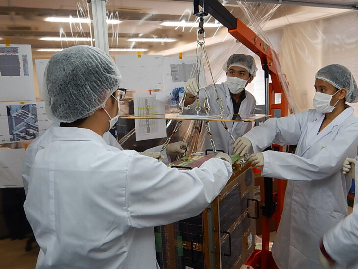 Photo: A small satellite being assembled as part of a joint-research program to observe and predict extreme weather