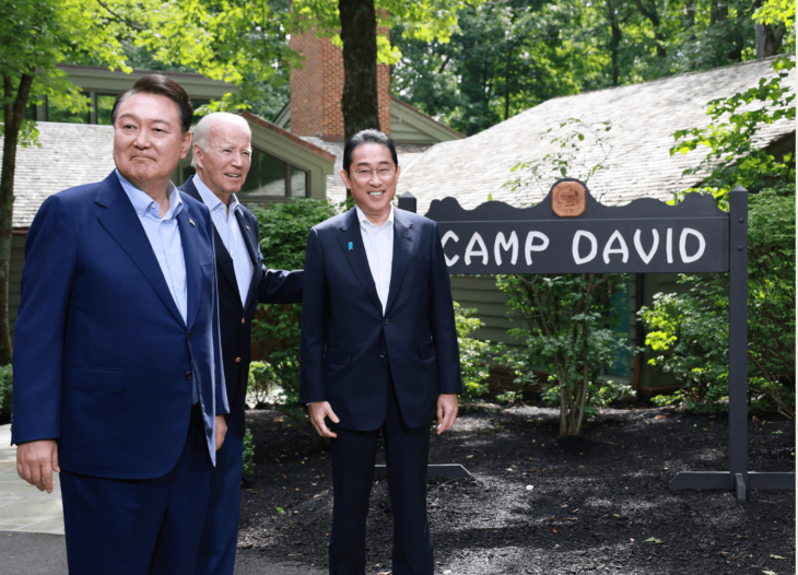 Prime Minister Kishida (right), President Biden and President Yoon attend the Japan-US-ROK summit held at Camp David on