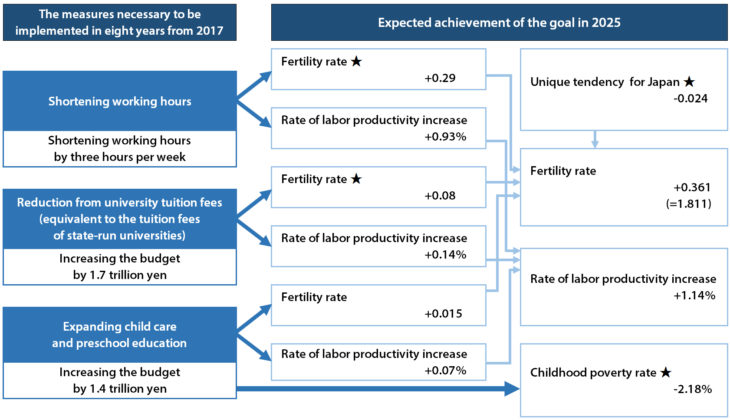 To what extent will these four needed measures be implemented to increase the fertility rate by 0.35 by 2025? How much will labor productivity and childhood poverty be improved by such efforts? From this perspective there were no existing trial calculations.
