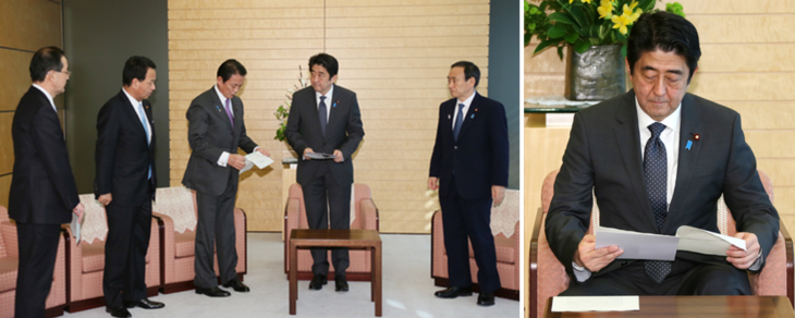 On January 22, 2013, then Prime Minister Abe Shinzo received the report of the joint statement by the government and the Bank of Japan. Abe said, “This joint statement is for making a bold review precisely on monetary policy towards breaking out of deflation, and I believe it is in a way a groundbreaking document in terms of monetary policy. Especially with this new effort, which can also be called a regime change, we must break out of deflation.”