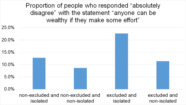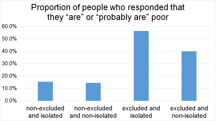 When people in the excluded and isolated layer were asked if they thought they were poor, 56.4% said that “they are poor” or “probably poor,” which is a big difference with the excluded and non-isolated layer (40%).