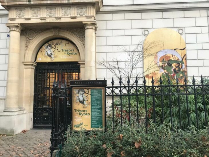 I want now to comment on the actual exhibitions with a focus on the art exhibitions, but it is not that I was able to see all the exhibitions. Because I went to France in the third week of December 2018, I missed “FUKAMI: Une plongée dans l’esthétique japonaise” (Hôtel Salomon de Rothschild), “Jakuchu: Le royaume coloré des êtres vivants” (Petit Palais), “Jomon: Naissance de l’art dans le Japon préhistorique” (Maison de la culture du Japon à Paris), and “Foujita: Œuvres d’une vie (1886–1968)” (Maison de la culture du Japon à Paris), among others. Besides “Japon-Japonismes: Objets inspirés, 1867–2018” that I introduced last time, I was also able to see “Trésors de Kyoto: Trois siècles de création Rinpa” (Musée Cernuschi), “Meiji: Splendeurs du Japon impérial (1868–1912)” (Musée national des arts asiatiques Guimet) and “Manga⇔Tokyo” (La Villette).