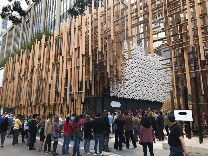 Japan House Sao Paolo, which opened in April, 2017. The distinctive facade produced by Kuma Kengo.