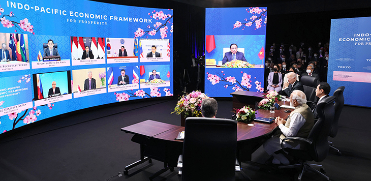 On May 23, 2022, Prime Minister Kishida Fumio, U.S. President Joseph Biden, Indian Prime Minister Narendra Modi and summit-level and cabinet-level representatives from 10 other countries attended a meeting on the launch of the Indo-Pacific Economic Framework (IPEF) in a hybrid format in Tokyo.