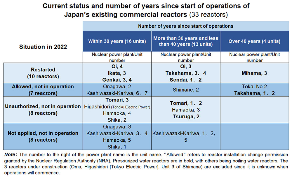 In China, AP1000 reactors and European pressure reactors (EPR) have been in operation since 2018. All 10 reactors so far restarted in Japan are pressurized water reactors and old (see Table). In order to rectify this situation, it is important to replace older pressurized water reactors with next-generation light water reactors.