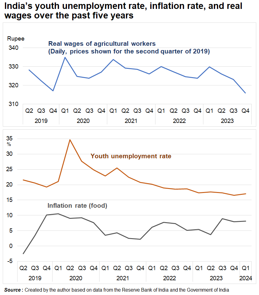 Underlying the election results is the economic mismanagement of the Modi administration over the past decade. In addition to the abolition of the most expensive banknotes, which suddenly scrapped 86% of the currency in circulation in November 2016, the world’s most powerful lockdown was implemented in March 2020 without adequate preparation, unnecessarily disrupting the economy. These economic policies only caused unnecessary pain to small businesses and migrant workers in the cities. Both policies have caused the economy to decline to the point of extreme deterioration and have created massive unemployment.