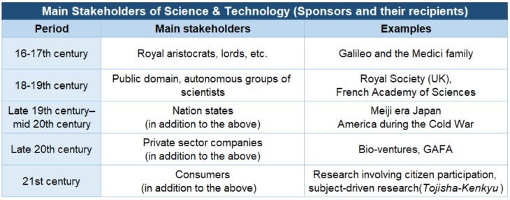 There is an increasing number of cases where regular people have worked with science and technology experts or even played a role as experts in tackling themes and issues that were not apparent to traditional experts, such as R&D involving citizen participation, or subject-driven research where people with disabilities describe their condition using their own words or concepts (known as Tojisha-Kenkyu).