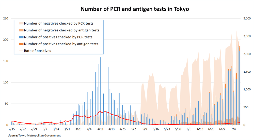 In regard to this, Nishimura Yasutoshi, Minister in charge of Economic Revitalization, stated that, “We are in an extremely tense situation where we ought to be cautious. I share the same understanding of the situation as Governor Koike and Deputy Chairman of the Expert Meeting, Omi Shigeru. I wish to make a call for more PCR testing to prevent secondary infections and to prevent the spread of infection to elderly people and those with underlying conditions.”