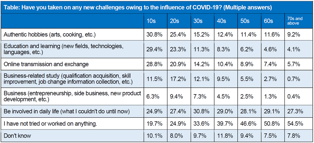 The online Survey on Changes in Lifestyle Awareness and Behavior Due to the Influence of COVID-19 (sample size: 10,218) by the Cabinet Office, conducted from the day the state of emergency was lifted until June 5, speaks volumes about the effects of COVID-19.